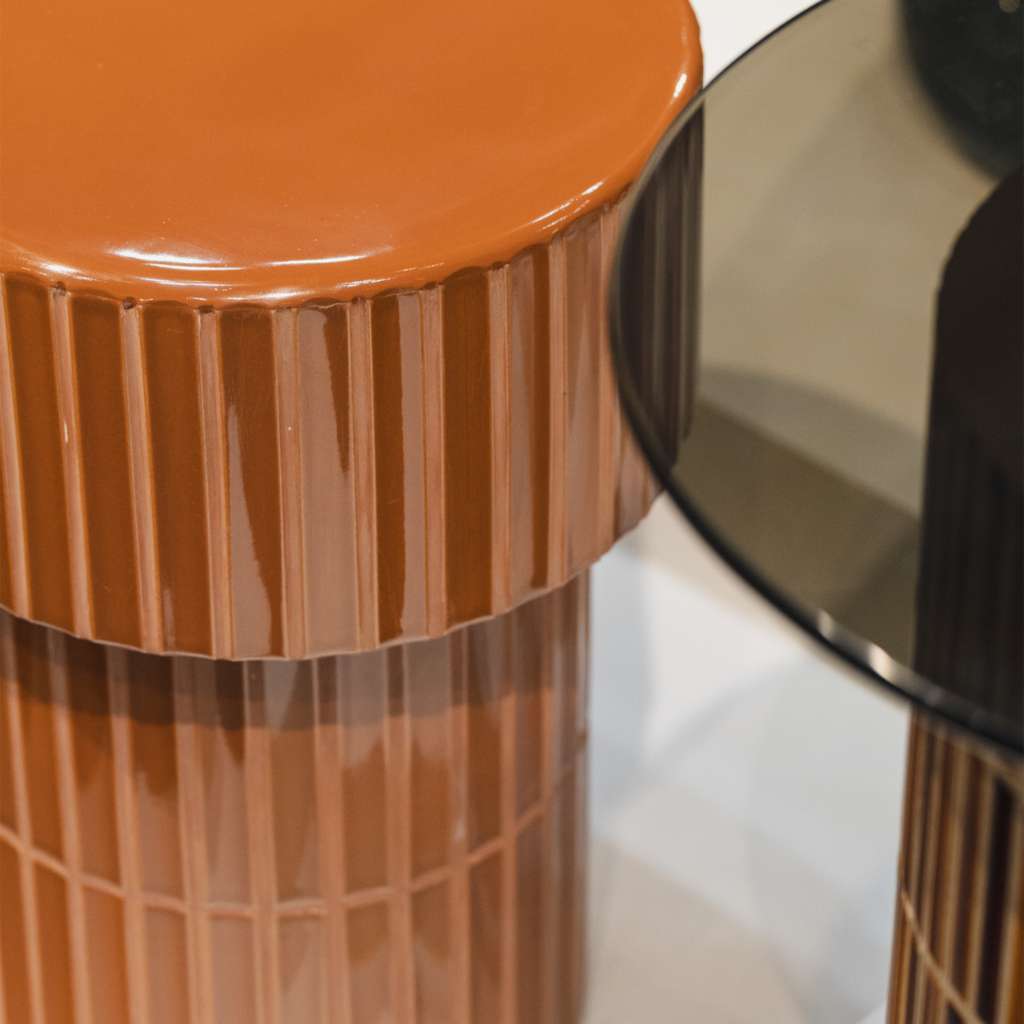 Cerra brings together cast concrete, ceramic glazed tiles and smoked glass to create a distinctive occasional table collection.